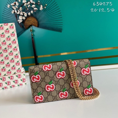 GUCCI古馳 “晶片版” 配全套專櫃包裝 新款。市場頂級獨家控貨,專櫃品質 採用進口牛皮,原廠五金!精緻做工。獨家實物拍照品質如圖可見。款號:634275。尺寸:寬20*高12.5*側寬4。顏色:蘋果/啡PVC