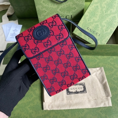 GUCCI古馳 GG Multicolor 紅帆布手機包 661109