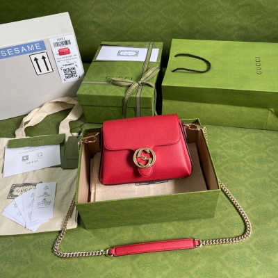 2021最新款 GUCCI古馳 Ophidia系列 雙G紅色全皮手提包 607720