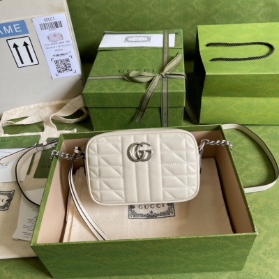GUCCI古馳 GG Marmont系列 全皮白色格紋 迷你相機包 634936