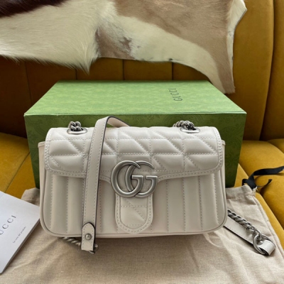 GUCCI古馳 原廠皮 Aria-時尚詠歎調.446744 Marmont系列以其標誌性的絎縫皮革和雙G字母交織配件而備受推崇.融入豎版和斜紋圖案!尺寸:22*13*6cm 配原廠包裝