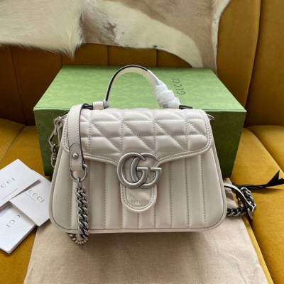 GUCCI古馳 GG Marmont系列 白色格紋迷你手提包 583571