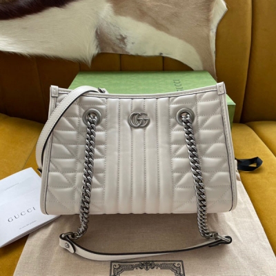 GUCCI古馳 GG Marmont系列 白色格紋小號托特包 681483