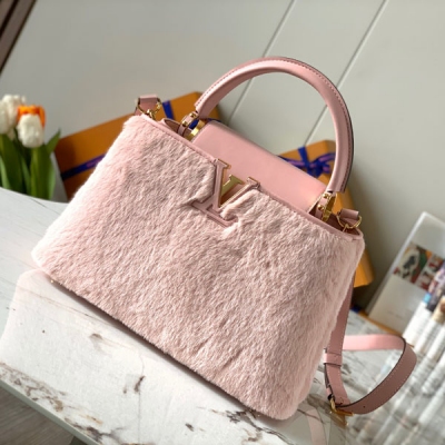 LV路易威登 Capucines 水貂皮草粉色中號肩背包 M42258