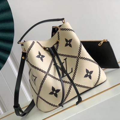 LV路易威登 NéoNoé 刺繡壓紋白色水桶包 M46023