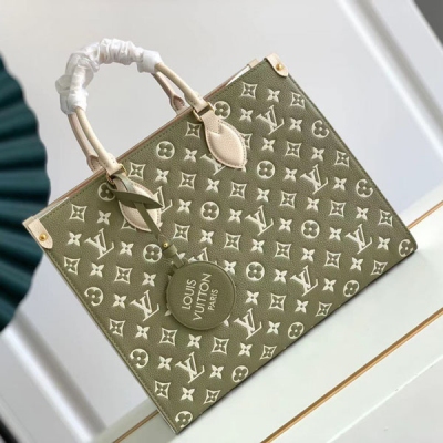 LV路易威登 OnTheGo 小牛皮印花草綠色購物包 M46060
