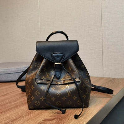 LV路易威登 Montsouris 老花黑皮女士小書包 M45515