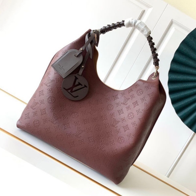 LV路易威登 SAC CARMEL 酒紅色真皮鏤空手腕包 M53188