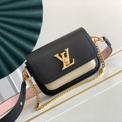 LOUIS VUITTON LV 路易威登 M58557 M58555 LOCKME TENDER 手袋 Lockme Tender 手袋取材柔軟粒面小牛皮,其金屬 D 形環可懸掛個性配飾。可拆卸並調節的寬幅肩帶在傳統鏈條之外增添實用細節。尺寸:19x13x8cm