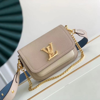 LOUIS VUITTON LV 路易威登 M58557 M58555 LOCKME TENDER 手袋 Lockme Tender 手袋取材柔軟粒面小牛皮,其金屬 D 形環可懸掛個性配飾。可拆卸並調節的寬幅肩帶在傳統鏈條之外增添實用細節。尺寸:19x13x8cm