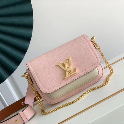 LV路易威登 LOCKME TENDER 粒面小牛皮粉色女包 M58557