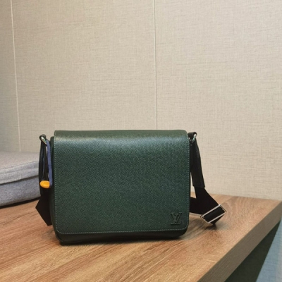 LOUIS VUITTON LV 路易威登 新款高版 M30861綠 DISTRICT 小號郵差包本款 District 小號郵差包以 Taïga 牛皮革構築方正廓形,再為充裕空間搭配拉鍊後袋,成就日常潮流之選。可調節肩帶實現多種背攜方式,D 形環可懸掛鑰匙或錢夾。詳細特徵:26 x 20 x 7 釐米