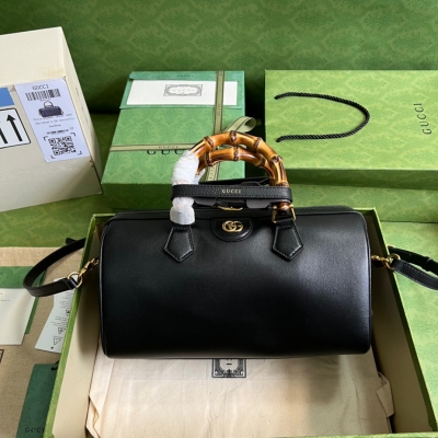 GUCCI古馳 黑色原廠牛皮竹節枕頭包 655663