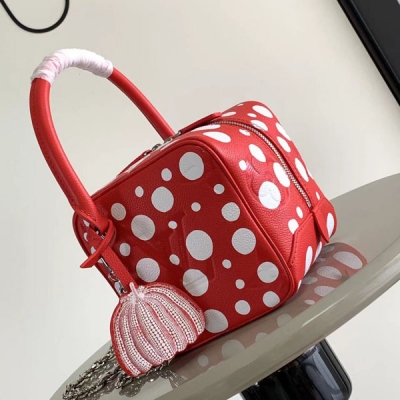 LV路易威登 M21779 LV x YK SQUARE 紅波點壓紋牛皮手提包