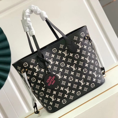 LV路易威登 春季系列 Neverfull 全皮印花刺繡購物袋 M45686