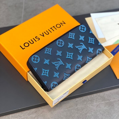 LOUIS VUITTON LV 路易威登 M82322藍色、本款 Zippy Vertical 錢夾先後採用印花和壓印工藝,在柔軟牛皮革表面重現 Georges Vuitton 於 1896 年創作的 Monogram 圖案。環繞式拉鍊開啟口袋、卡片夾層和拉鍊零錢隔層。size:10x20x2cm。