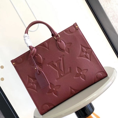LV路易威登 ONTHEGO 酒紅壓紋工作購物包 M45607