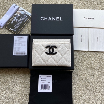CHANEL香奈兒 小香進口義大利顆粒小牛皮 貨號:AP1967 尺寸:w11×7.5cm 顏色:白色球紋黑色嘜頭 用途:卡包