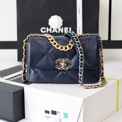 CHANEL香奈兒 海軍藍19 bag 純原廠山羊皮26cm小號女包 AS1160