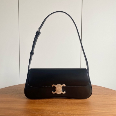 CELINE 新品上線LOLA 手袋 2024 CE NEW LOLA中號亮澤牛皮革手袋 獨特的潤飾 在亮澤和通透感之間取得均衡 簡潔而優美,延續Triomphe肩背包的修長法棍包廓形,亮點是包底設計成浪漫的弧形線條,添一絲俏麗氣質。中央金屬凱旋包扣頗有辨識度,長法棍包型內裡容量大,造型感也強 牛皮革,羊皮革襯裡,肩背,全鋼金屬鎖扣,調節肩帶.尺寸:28x12x5