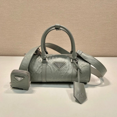 PRADA普拉達 灰色全羊革新款枕頭包 1BA389