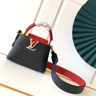 LV路易威登 mini Capucines手袋 M96467黑拼紅 荔枝紋牛皮