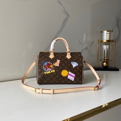 LV路易威登 SPEEDY 30 老花絲印枕頭包 M41112 超好手感