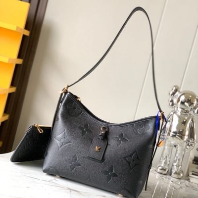 LOUIS VUITTON LV 路易威登 特級精品原廠皮 M46288黑色壓花 本款 CarryAl 小號手袋選用 Monogram Empreinte 壓紋皮革,搭配穩妥開合、考究內裡和可拆卸拉鍊袋,為日常出行提供舒適之選。巧用可調節肩帶,手提、肩背、斜挎隨心切換。詳細特徵 24x29.5x12釐米(長度x高x寬)
