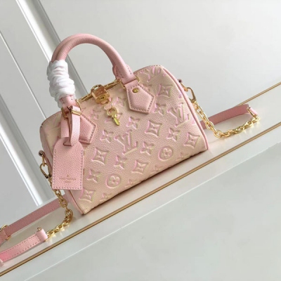 LV路易威登 Speedy Bandoulière 20 粉色壓花枕頭包 M46163