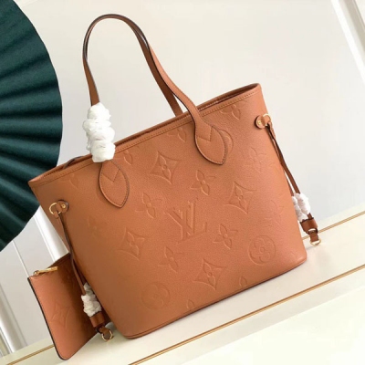 LV路易威登 Neverfull 焦糖色壓花牛皮中號購物袋 M45686