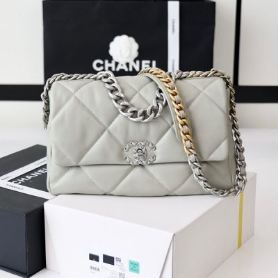 CHANEL香奈兒 純原廠山羊皮銀扣 19 bag 小號灰色女包 AS1160
