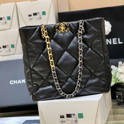 CHANEL香奈兒 2022新款 19 bag 原廠皮tote黑色購物包 AS3519