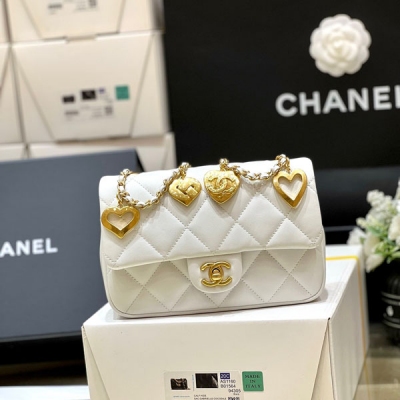 CHANEL香奈兒 CF限量版白色小羊皮愛心吊墜鏈條包 AS3457