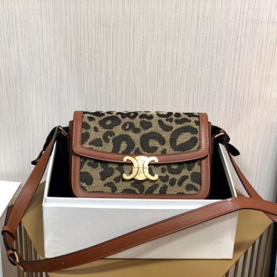 CELINE Triomphe Box系列 豹紋全鋼復古斜揹包