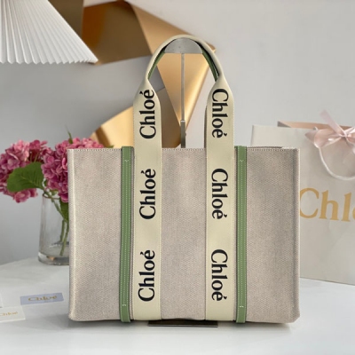 Chloe克洛伊 Woody 綠色帆布托特包 大號:45*33*13cm