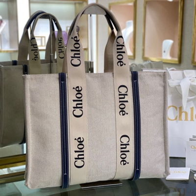 Chloe克洛伊 Woody Tote Bag 帆布配藍皮女士托特包